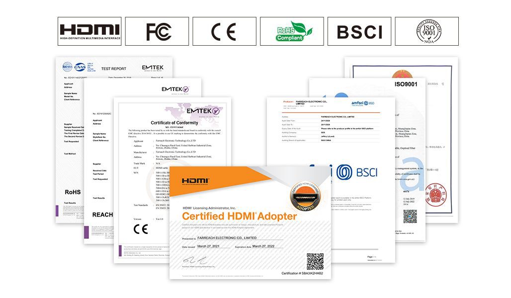 Освен нашите съществуващи формовани продукти, Farreach също може да произвежда кабелни продукти според чертежите или пробите от нашите клиенти и предлага безплатни и професионални дизайнерски услуги. Ние контролираме качеството на продукта критично за всяка стъпка по време на производството от суровия материал до готовите продукти със 100 процента QC инспекция и следпродажбено обслужване. Всички наши продукти имат 1 година гаранция, можете да бъдете спокойни за качеството.